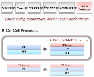 介电绝缘保护层 Photo Overcoat(POC)应用于触控面板感应器,可用于金属电极间的介电层及包覆线路的透明保护涂层,此涂层须具备良好的绝缘特性、对于ITO与金属电极有极佳的附着性、优良的耐化性,并具有良好的表面硬度。